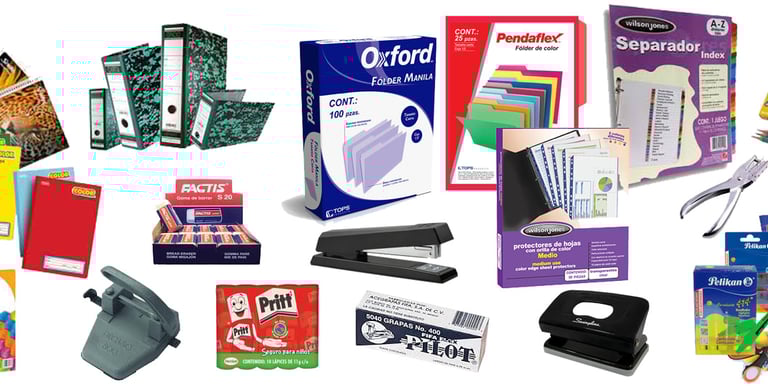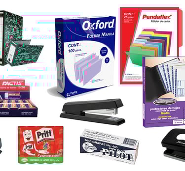 Hojas, bolígrafos, Maca textos, Carpetas y muchos articulos mas
